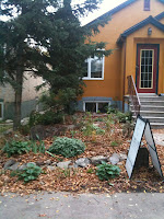 Managed to reuse broken concrete, salvaged rocks and stepping stones already out front and in back, and transplanted the plants my yard already had. I can't wait until spring! Though Fall looks pretty good on my yard too.